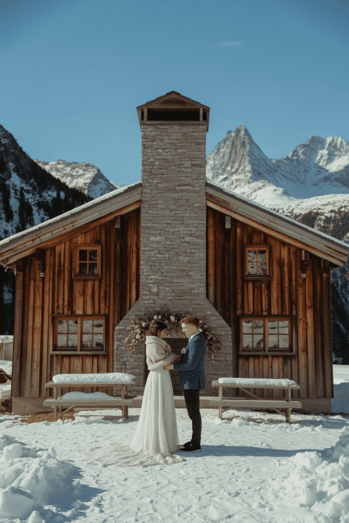 Couples can hold ceremonies within cozy alpine chapels, historic inns, or outdoor terraces overlooking snow-covered peaks. Local chalets provide intimate spaces adorned with wood beams and warm fabrics, ideal for smaller ceremonies or winter-themed weddings.