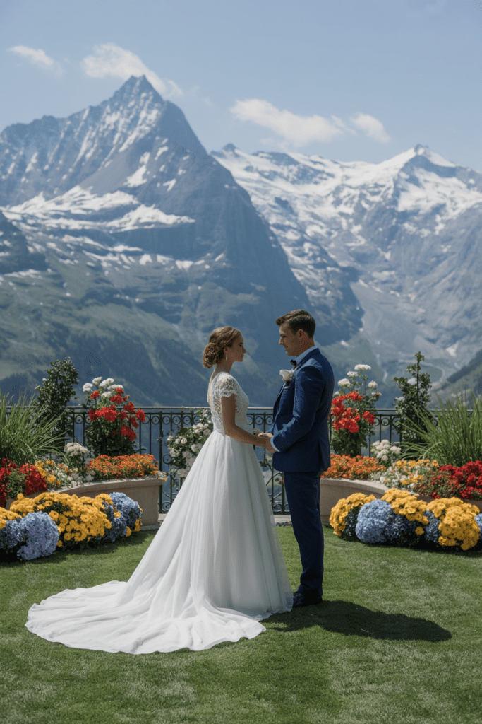 Ideal wedding seasons here are late spring through early autumn when the Alpine landscape bursts with color and light, offering spectacular sunrises and sunsets.