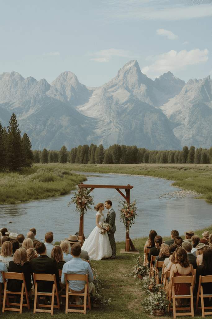 Snake River Ranch, perched 2,135 meters above sea level, offers breathtaking views of the Grand Tetons and the Snake River Valley, embodying the perfect mountain riverside wedding destination. This rustic luxury ranch blends raw Western charm with polished amenities designed for intimate celebrations surrounded by spectacular peaks and flowing waters.