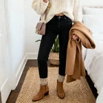 Wear it for errands, snowy city walks, or casual lunches. A quilted puffer or fleece-lined jacket amps up the cozy factor. It’s the kind of outfit that looks great even when you’re just grabbing hot cocoa.
