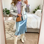 Want that long-and-lean effect without freezing? A turtleneck mini paired with over-the-knee boots keeps everything warm and elongates your silhouette. It’s flirty but still winter-appropriate—an instant confidence booster.