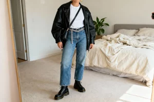 Want that cool-girl “I just threw this on” energy? Pair a sleek slip dress with a tough leather jacket and Docs, and you’re there. It’s equal parts feminine and grunge, and it never fails.