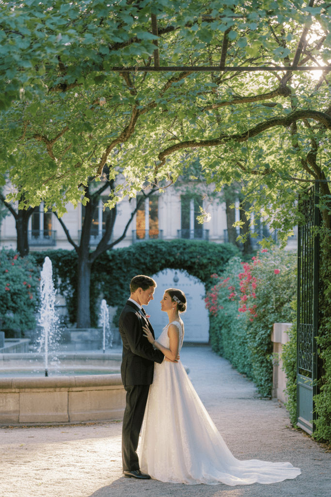 Parc des Buttes-Chaumont, located on Paris’ northeast side, provides a more fantasy-like setting with artificial cliffs, a temple, and a cascading waterfall. The elevated and hilly areas create remarkable photo opportunities for weddings, and its paths, bridges, and hidden groves are perfect for intimate ceremonies or elopements. Accessibility and atmosphere combined have made it a beloved secret for locals.