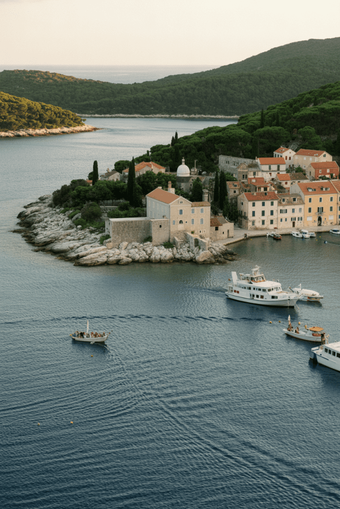 Mljet, famed for its lush national park and two tranquil saltwater lakes, offers a calm, mystical backdrop with historic Benedictine monasteries adding timeless charm. Guests can enjoy hiking trails and boat rides for leisure during multi-day weddings.