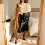 This one’s minimalist magic. The loose drape over a structured coat instantly whispers “I woke up chic.” It’s unfussy, comfortable, and works for daytime meetings, art gallery strolls, or brunch with friends.