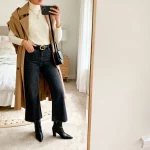 If you love playing with layers and textures, this one’s for you. A sleek turtleneck grounds the look, while a statement coat (bold pattern, color, or texture) adds that artsy, street-style flair. It’s winter-friendly while still feeling editorial.