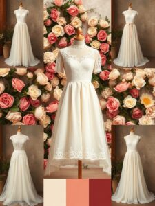 Accessorizing with flower crowns adds a playful element to the outfit. Barefoot sandals complement the rustic feel, perfect for outdoor ceremonies in scenic venues like forests or beaches. Imagine saying “I do” surrounded by nature!
