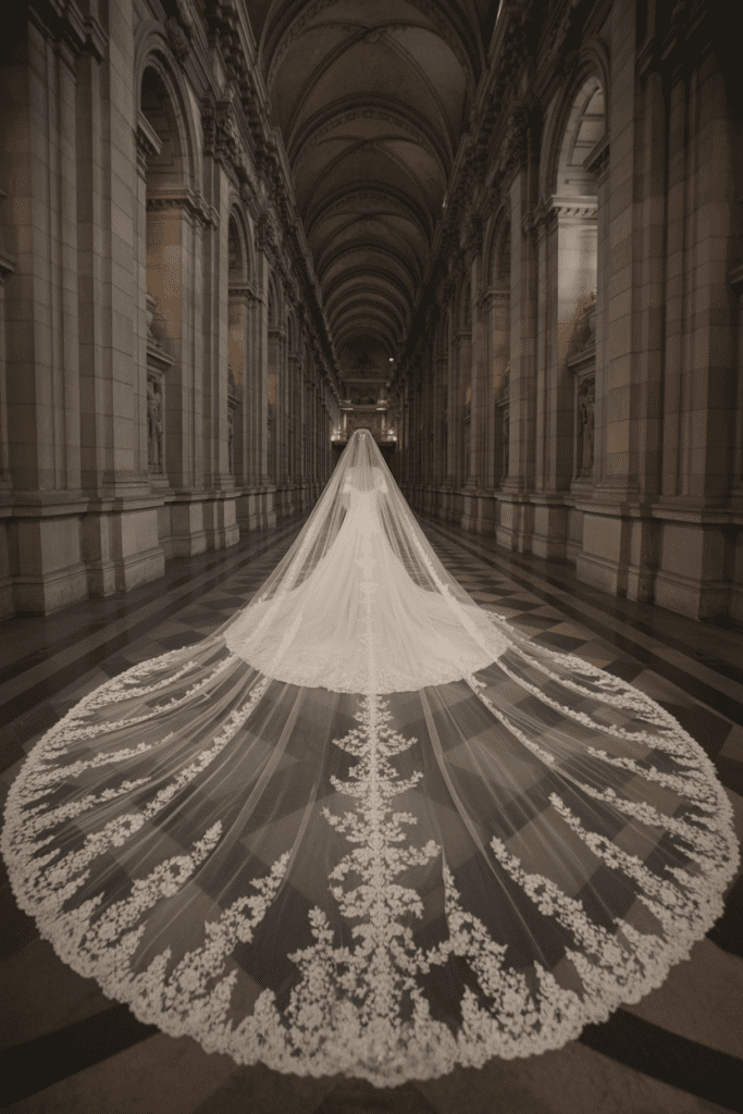 It’s also important to think about comfort and movement. Cathedral veils can be heavy and may require some practice to walk gracefully with them. Pairing it with a simpler hairstyle can keep the focus on both the veil and the gown. For brides wanting a bolder statement, adding a tiara or jeweled comb can elevate the look.