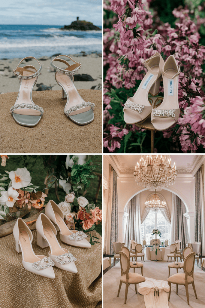 Choosing bridal footwear starts with understanding the venue’s surface. Each setting—beach, garden, or ballroom—has unique qualities that impact your shoe choice.
