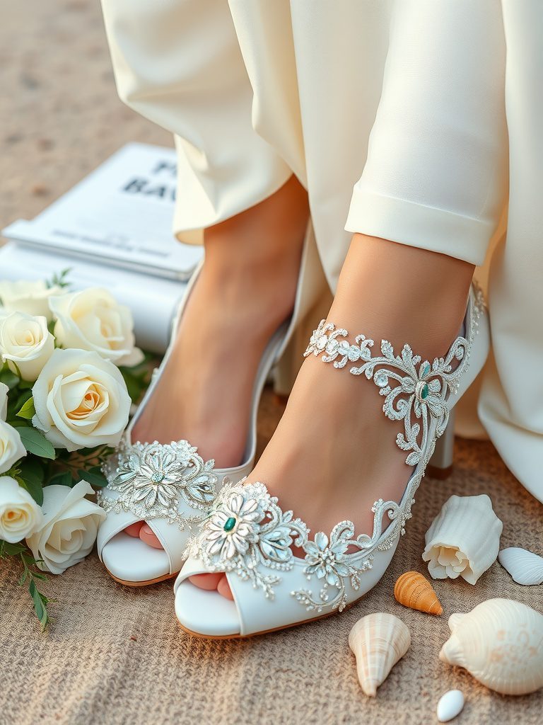 Choosing bridal shoes is a fun part of wedding planning, and the right embellishments can elevate your look based on your venue. For a beach wedding, consider lighter options. Embellished sandals or even barefoot sandals can bring sparkle without compromising comfort in the sand. Think about delicate beads or seashell accents that tie into the coastal theme.