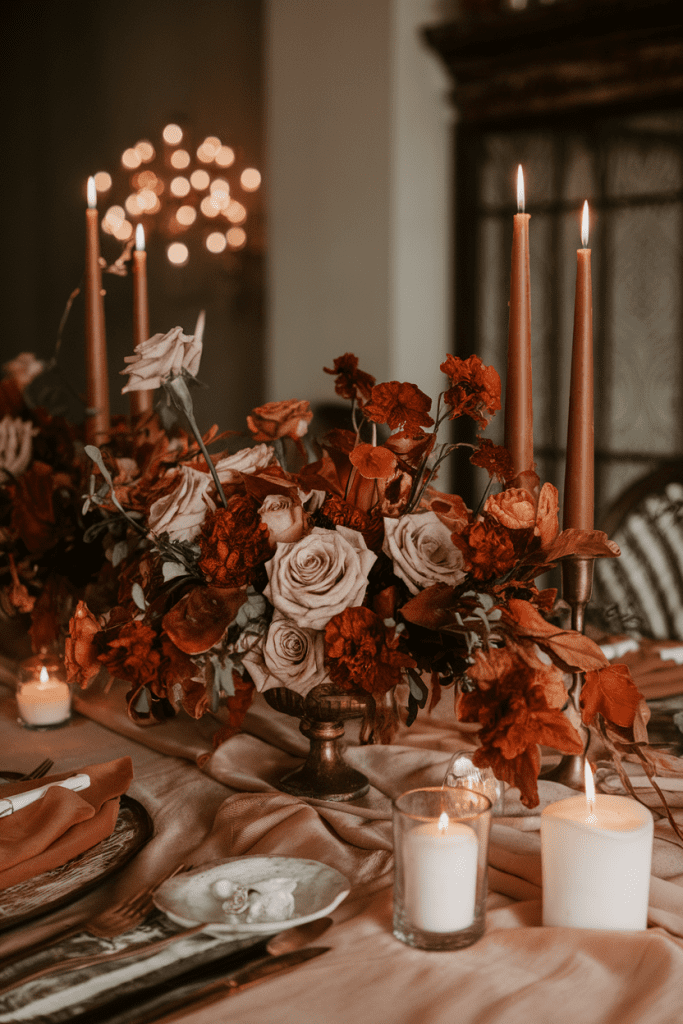 Blush is typically a spring favorite, but paired with rust it gets an autumn glow-up. It’s soft, romantic, and a little moody—basically the perfect balance.
