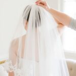 Nothing says vintage bride like sculpted finger waves paired with a chic birdcage veil. It’s drama in the best way—elegant, artistic, and perfect for intimate ceremonies or courthouse chic.