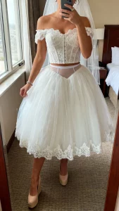 Wear it with a sweetheart neckline, off-shoulder sleeves, or a mini reception dress. If your hair is fine, clip in a couple of wefts under the half-up section for fullness—trust me, it’s a game changer. For outdoor weddings, anchor the teased area with a few hidden cross-pins.