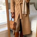 - Warm Neutrals: Camel coat, cream sweater, tan boots—soft and luxe.
