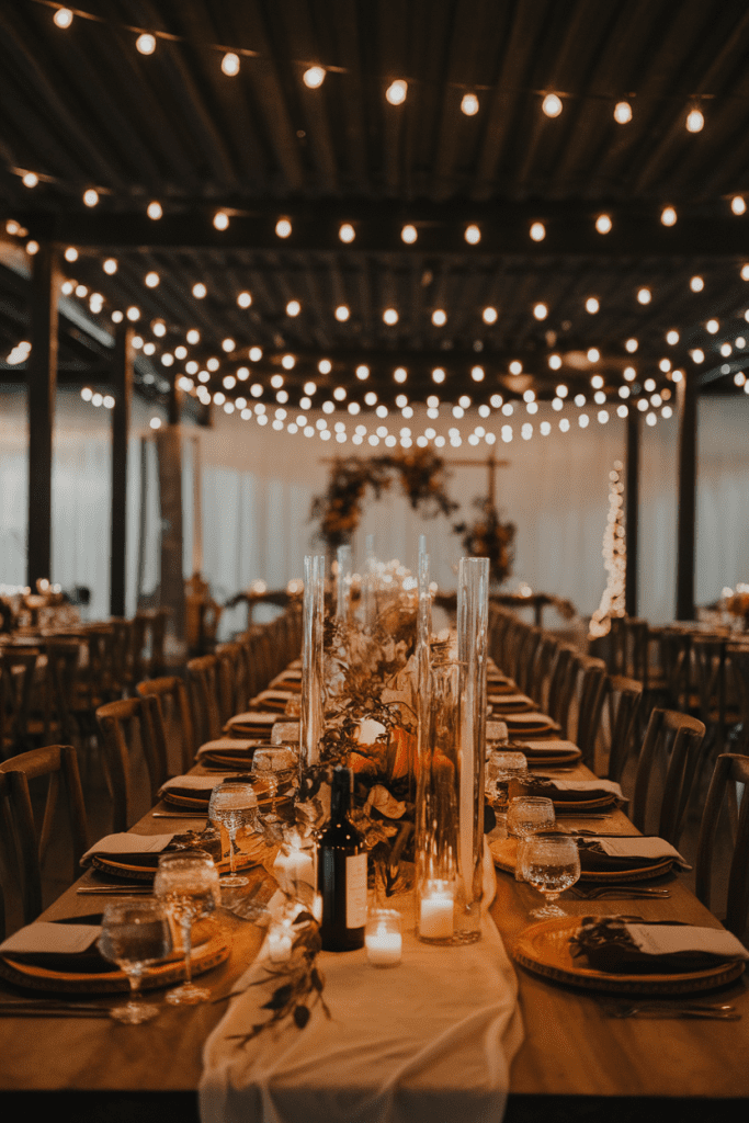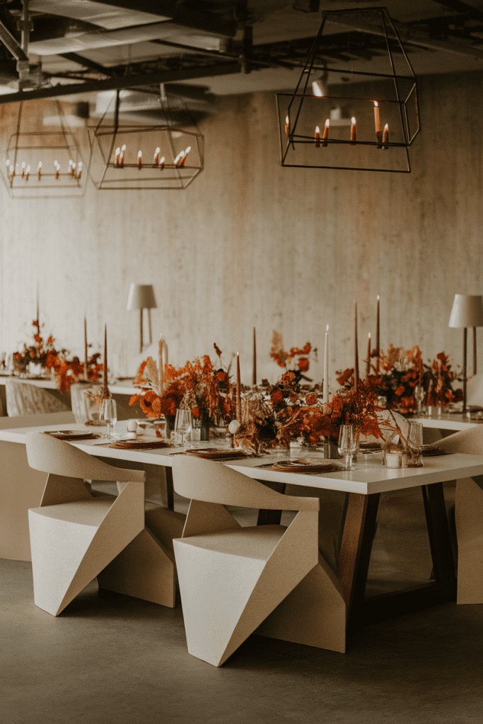 Modern minimalist fall weddings prove that “less” doesn’t mean “boring.” By focusing on intentional details—like sculptural florals, candlelit tablescapes, and warm lighting—you can have a wedding that feels sleek, stylish, and still romantic.