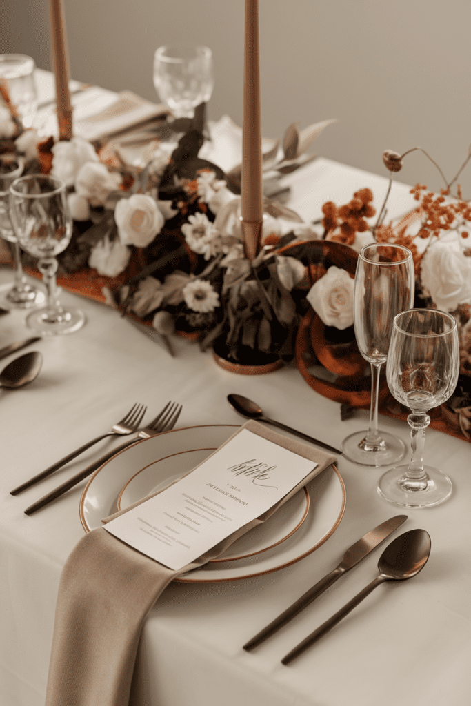 The secret sauce? Balance. Clean lines meet cozy details, modern design meets autumn warmth. The result is a wedding that looks Pinterest-perfect but still feels like you. And honestly, isn’t that the whole point?