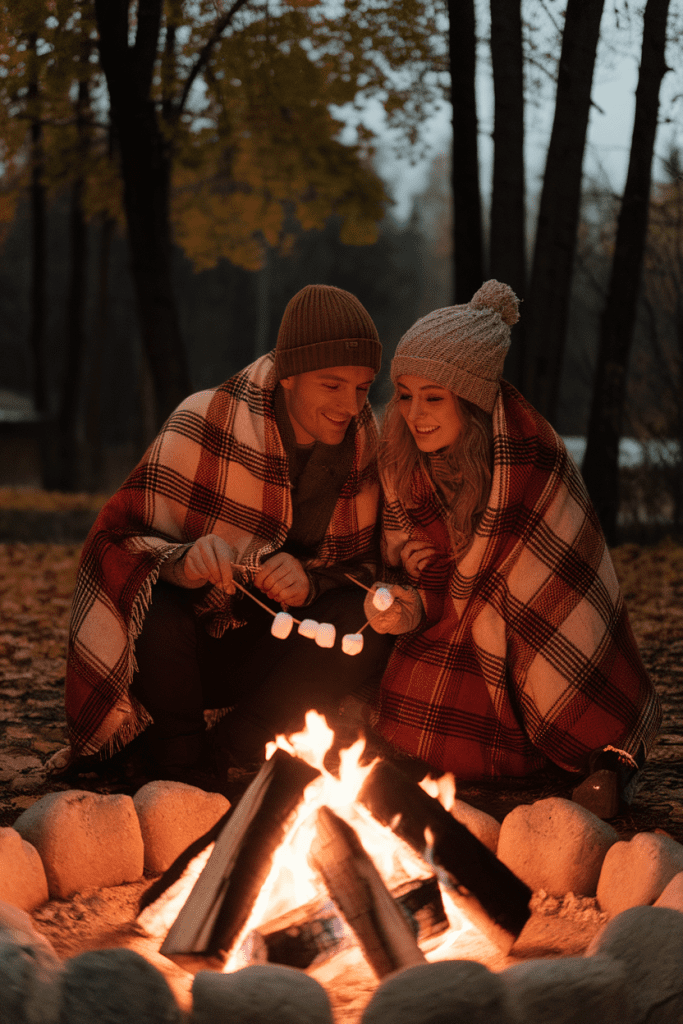 End your session with a campfire moment. Toast marshmallows, sip cider, or just snuggle close under blankets while the firelight flickers across your faces.