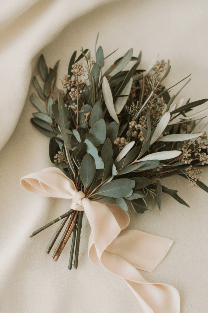 Skip the blooms and let greenery take the spotlight. Think eucalyptus, olive branches, or ferns.