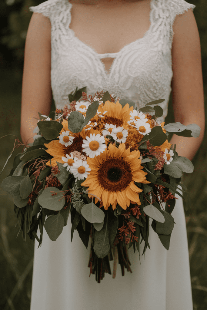 For a rustic summer wedding, sunflowers bring instant cheer. Pair them with daisies or eucalyptus for a vibe that’s bright but not cheesy.