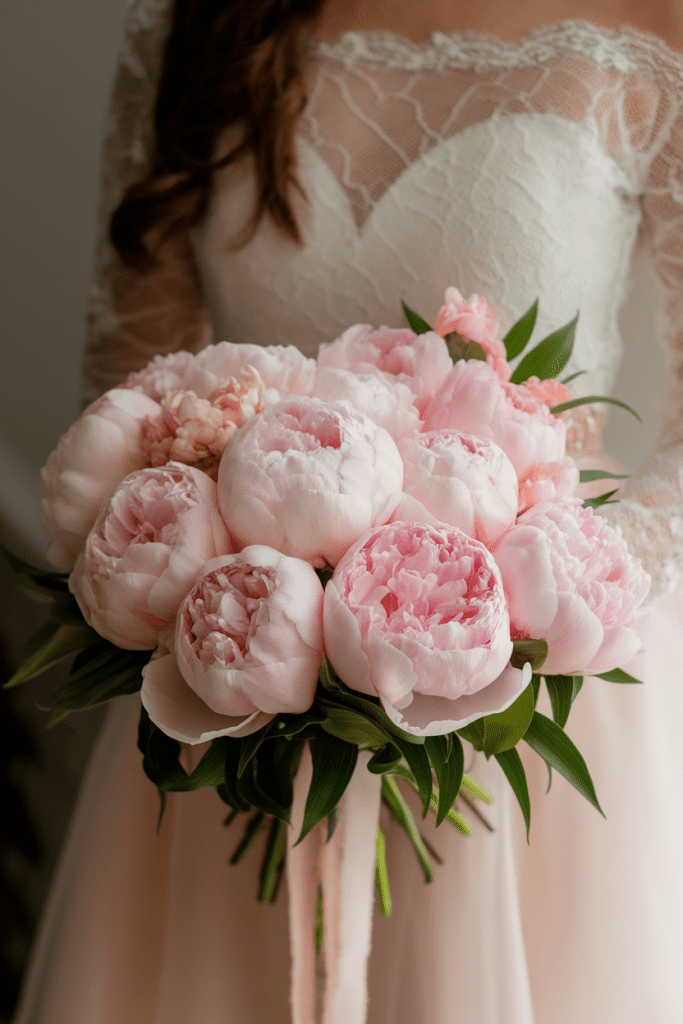 Spring brides, this one’s for you. A bouquet of pink and blush peonies is soft, fluffy, and totally Pinterest-worthy.