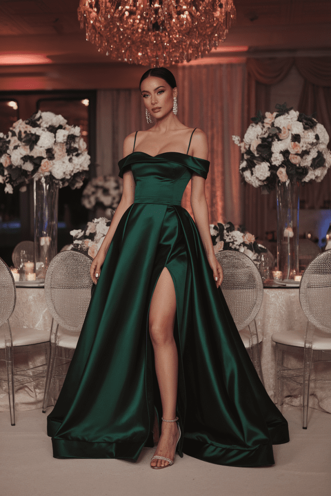 Leg reveal season. A satin gown with a thigh slit is dramatic, elegant, and endlessly photogenic.