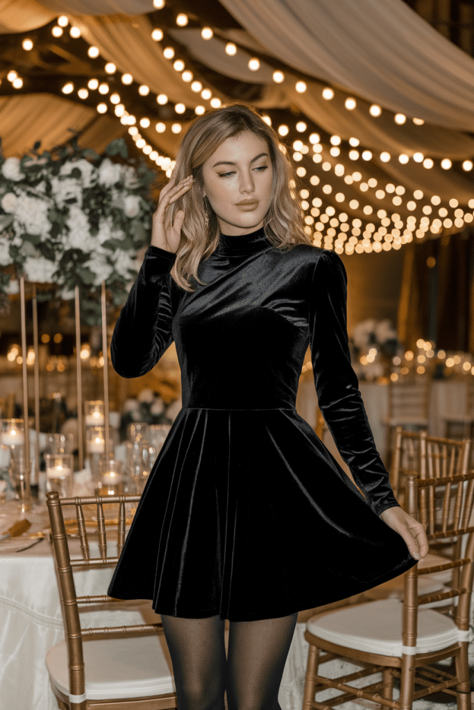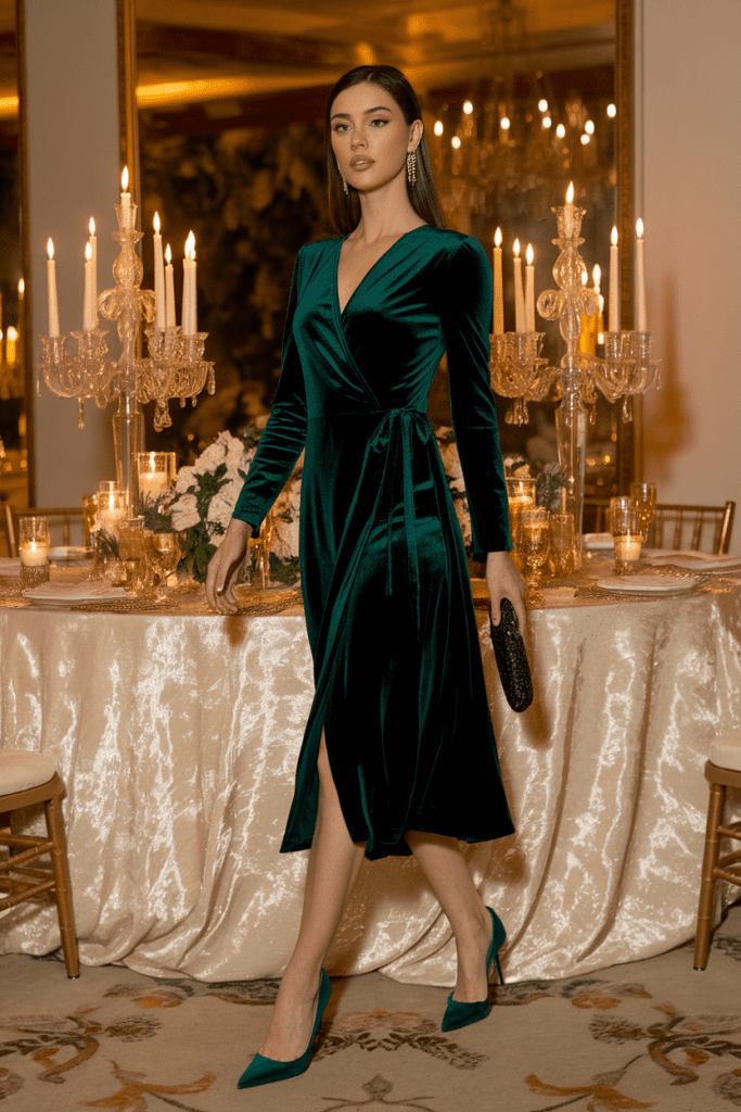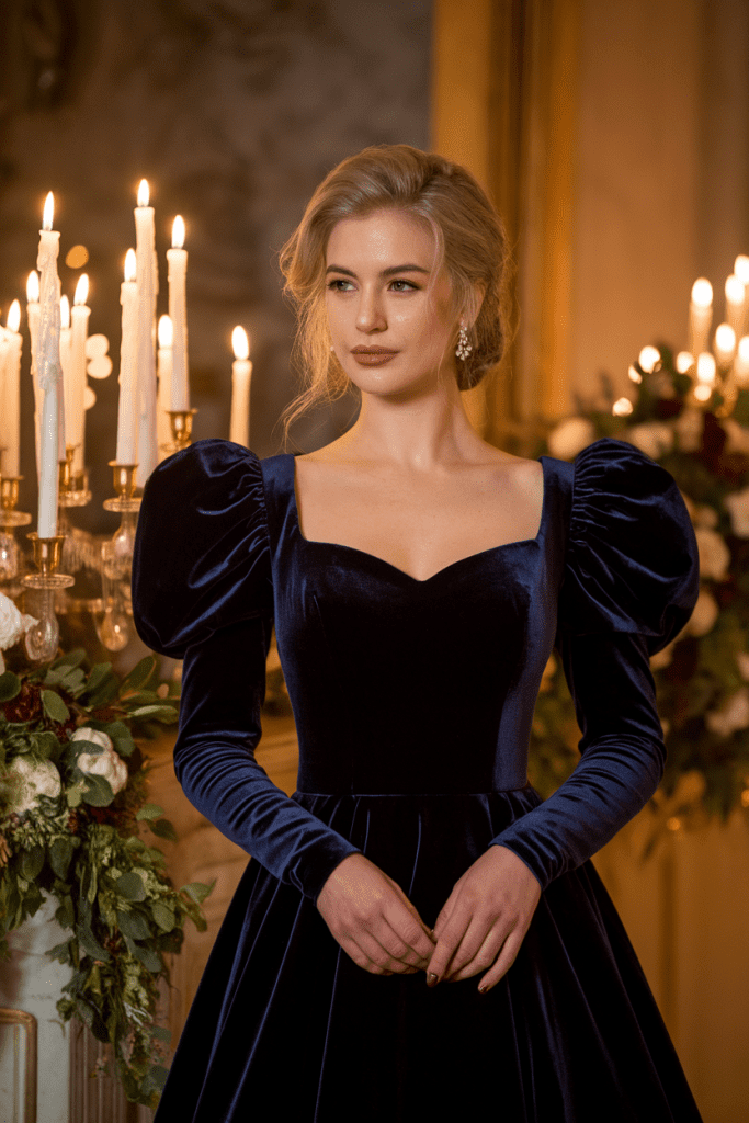 Puff sleeves have made a comeback, and in velvet they’re unbeatable. A puff-sleeve velvet midi balances retro fun with modern chic.