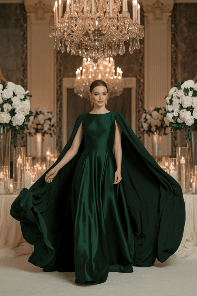 Bring the drama. A cape gown makes you look like you stepped out of a royal gala. Bonus: it keeps your arms warmer.
