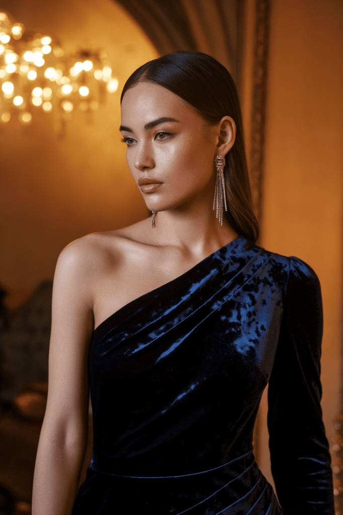 Asymmetry brings instant drama. A velvet one-shoulder cocktail dress feels like something a Bond girl would wear—minus the explosions.