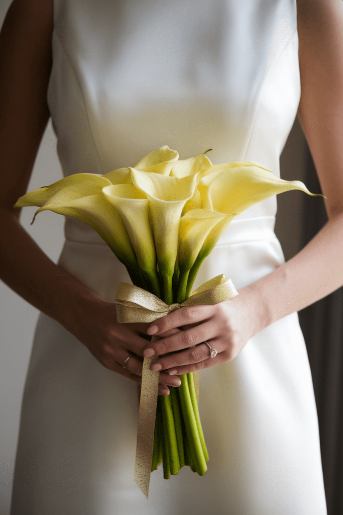 Yellow calla lilies are sleek and sculptural, giving off strong editorial vibes. A bouquet of just callas feels modern and powerful.