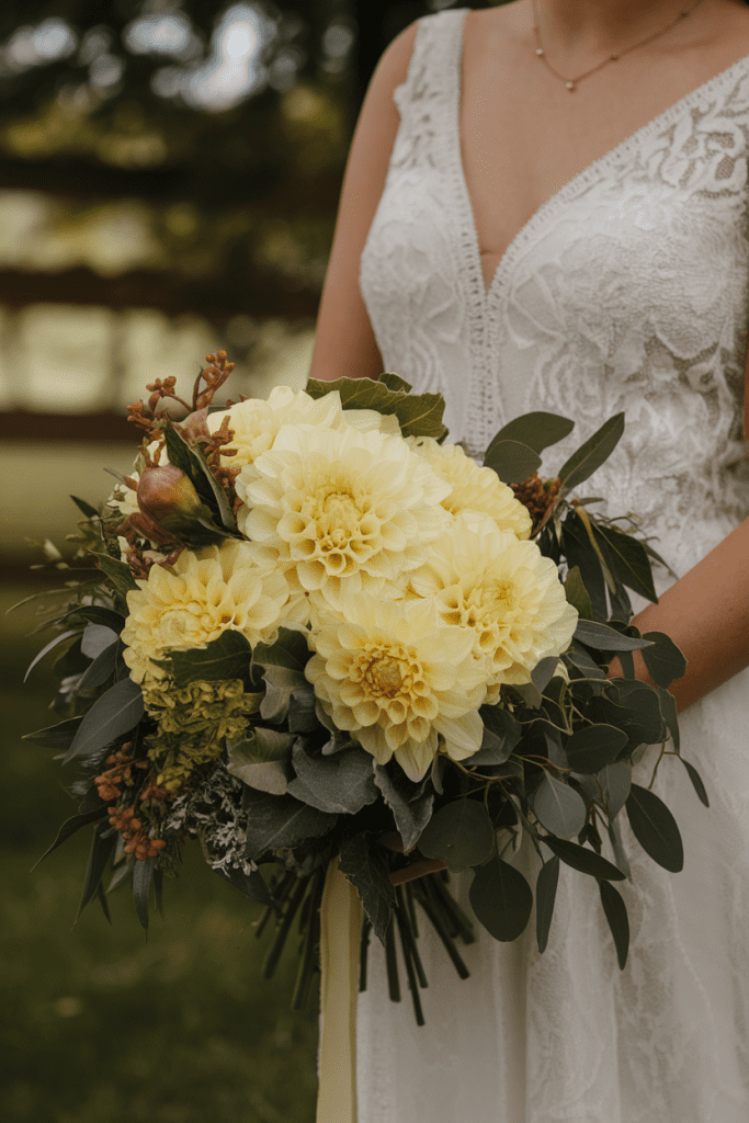 Yellow dahlias bring texture and size that instantly elevate a bouquet. Their layered petals make them feel lush and bold.