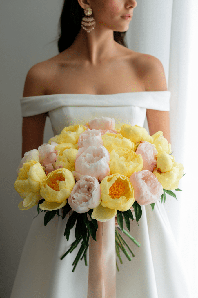 Yellow peonies are lush, fluffy, and absolutely breathtaking. They feel luxe but approachable—kind of like carrying a cloud of sunshine.