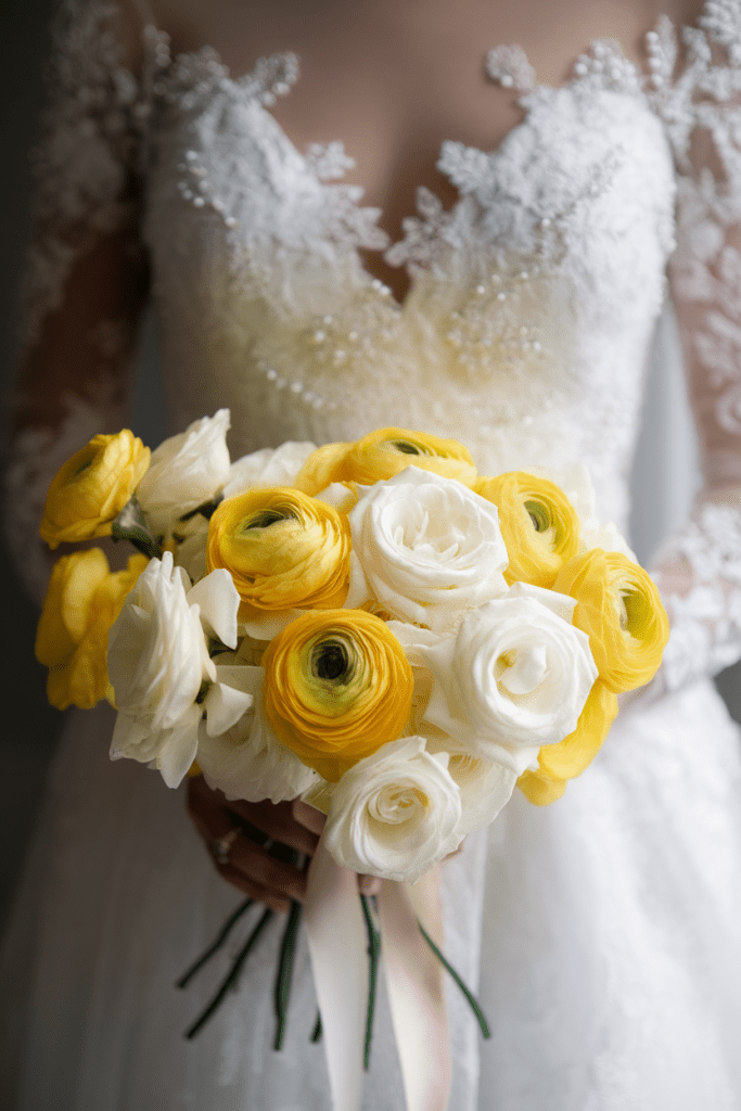 Here’s the thing about yellow bouquets—they don’t just sit pretty, they steal the show. Bright, warm, and a little unexpected, yellow flowers bring instant joy to your wedding day look. They’re basically wearable sunshine, and honestly, who doesn’t want to walk down the aisle glowing like golden hour?