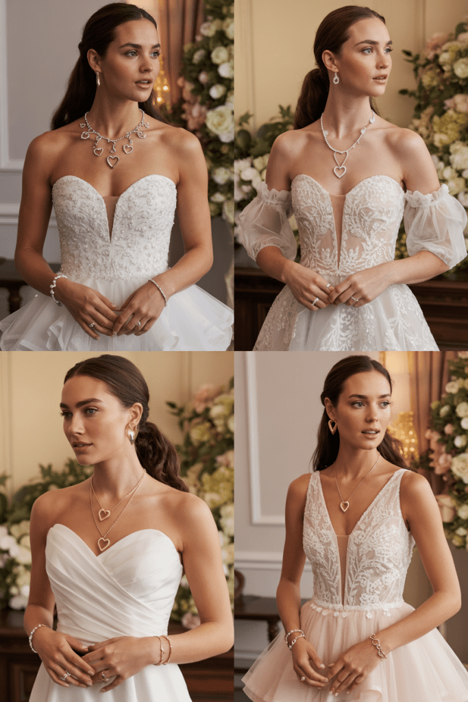 Choosing bridal jewelry can feel overwhelming, especially with so many beautiful options available. The right necklace for your wedding dress neckline can truly enhance your overall look. Whether you have a strapless, sweetheart, high-neck, or V-neck dress, the necklace style can define your bridal ensemble.