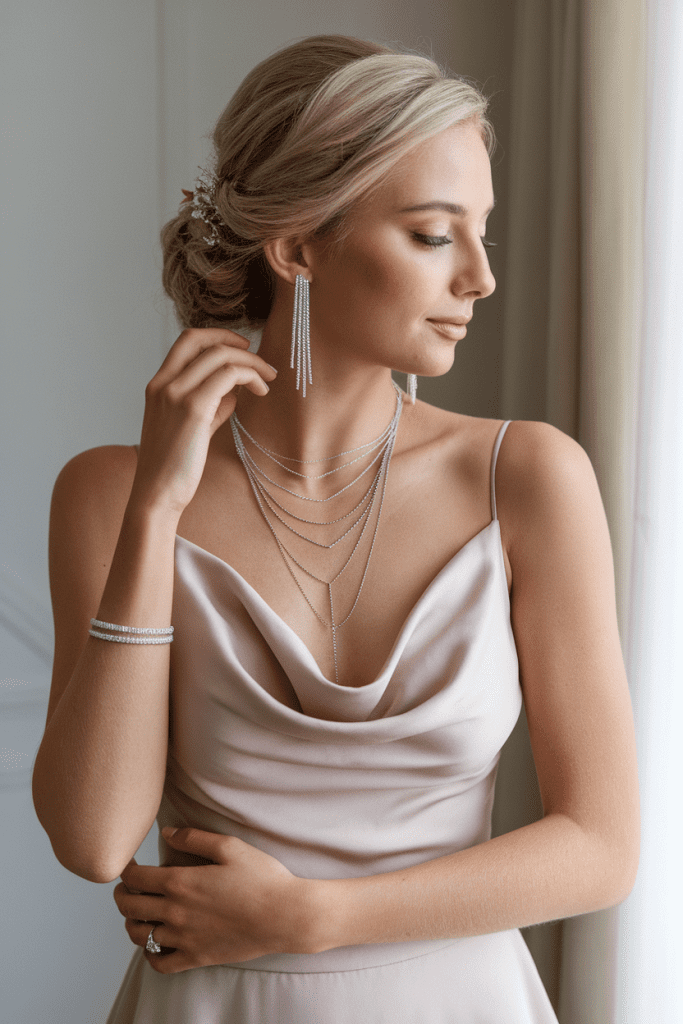 When it comes to necklaces, consider layering. A multi-strand necklace can accentuate the cowl’s curves beautifully. Choose styles that have varying lengths to create visual interest, such as the best necklace for wedding dress styles that feature soft lines and flowing fabrics.