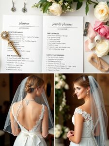 Don’t forget about classic styles! A simple veil and elegant earrings can offer a beautiful, cohesive look. When selecting accessories, think about how they relate to your dress and the venue. The way the wedding favors are presented in the image shows that every detail matters. A well-coordinated theme can make a lasting impression on your guests.