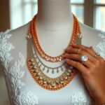 If vintage is more your style, opt for classic touches like pearls and lace gloves. The layered pearls shown in the image are a perfect example of vintage wedding jewelry that can elevate a traditional dress. Mixing these accessories with your gown will create a timeless look.