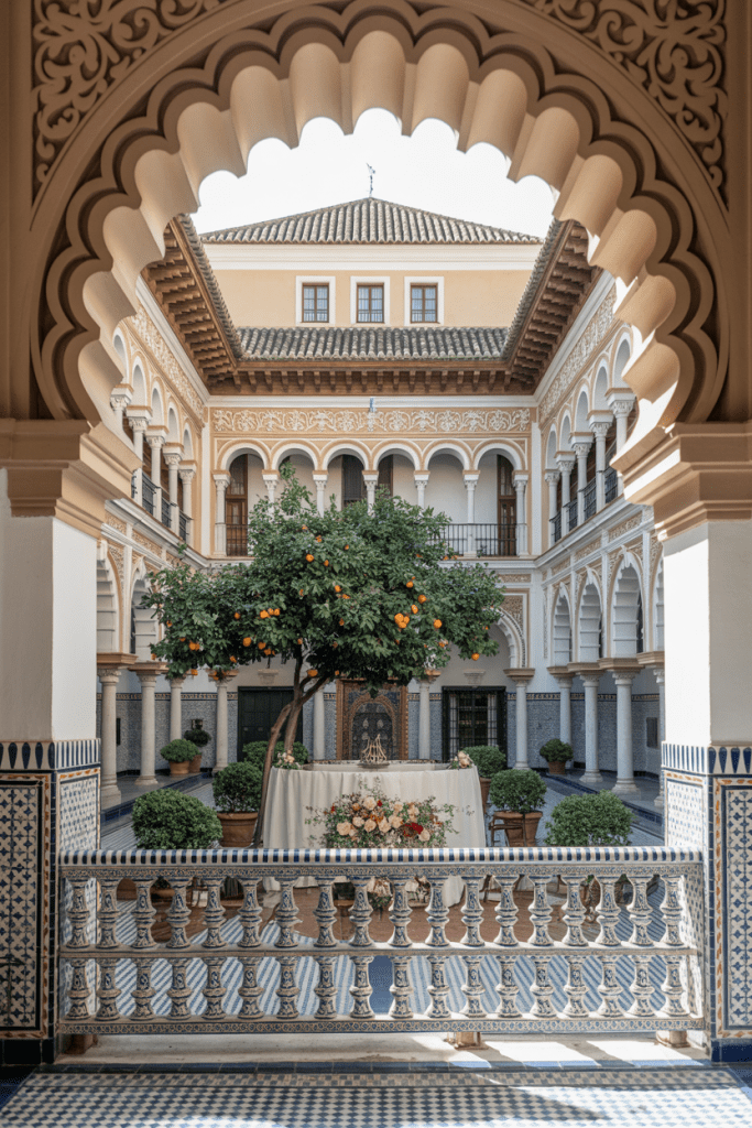 Couples may marry under orange trees in ornate courtyards or lavishly decorated salons. The palace’s combination of classical elegance, cultural heritage, and warm southern sunlight crafts an unforgettable wedding experience.