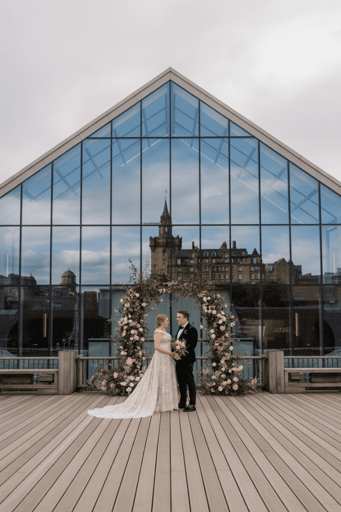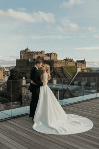 The Glasshouse, located in Edinburgh’s New Town district, offers a sleek and modern city wedding venue with stunning views over historic rooftops and Edinburgh Castle. Its contemporary architecture and glass facades flood event spaces with natural light, creating an airy and elegant atmosphere.