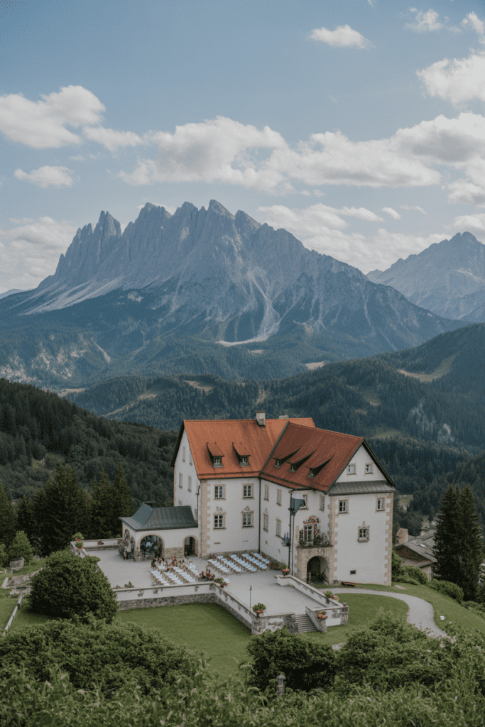 Schloss Elmau is a luxurious retreat nestled in the picture-postcard Bavarian Alps, renowned for its blend of historic architecture and contemporary elegance. Surrounded by towering pine forests and snow-capped peaks, this five-star castle hotel provides an intimate and inspiring mountain wedding venue.
