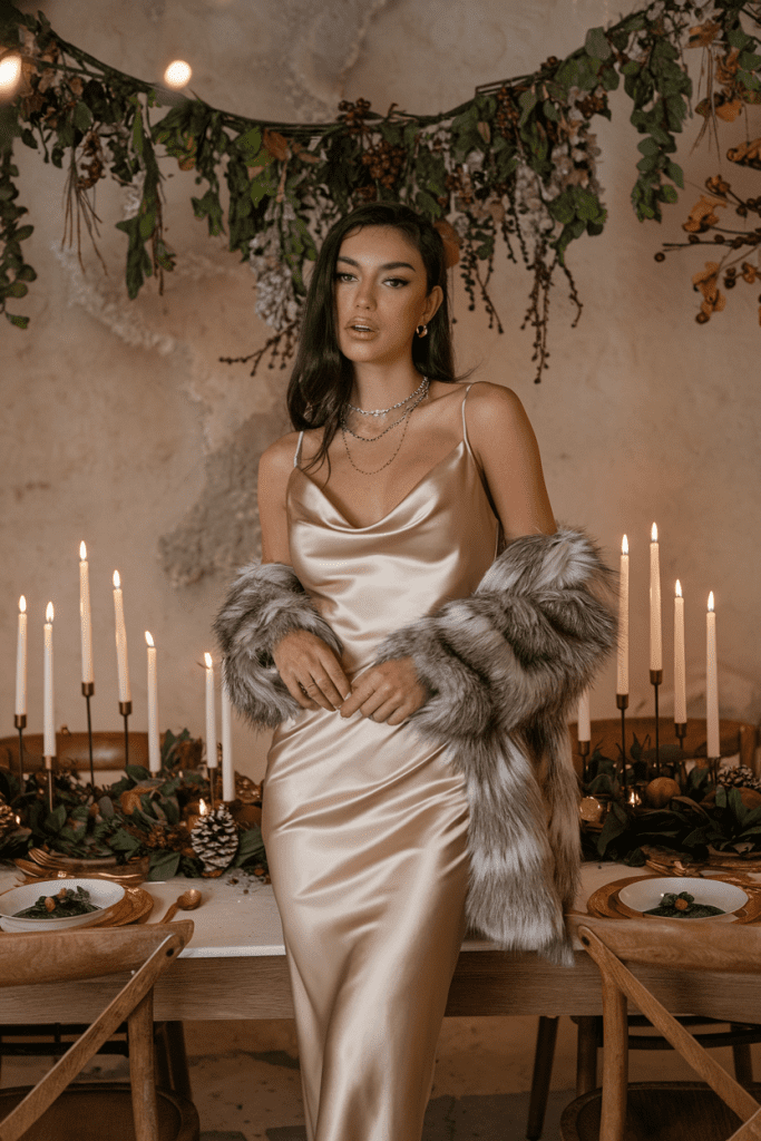 Style with delicate necklaces in autumn, then add a faux fur jacket for December. Guests love it because it’s effortless elegance.