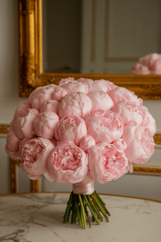 One word: indulgence. Imagine a bouquet made entirely of oversized peonies in blush, coral, or pure white. It’s so lush it practically becomes part of your outfit.