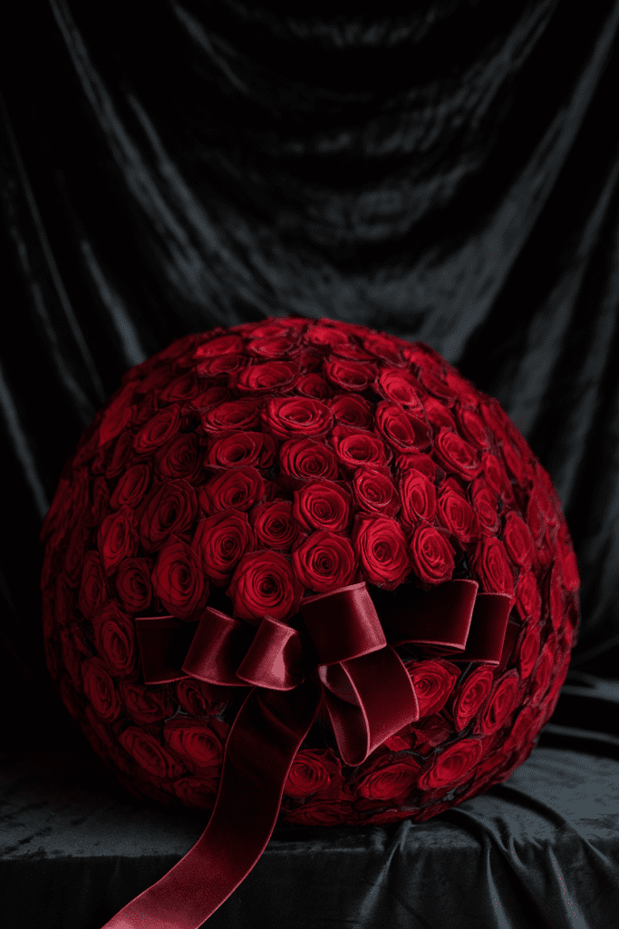 3. Bold Red Roses with Velvet Ribbon