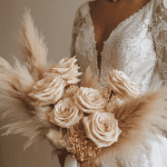 Sometimes it’s not about color, but texture. Mix roses, hydrangeas, dried accents, and fluffy pampas in neutral tones. It’s couture minimalism done right.