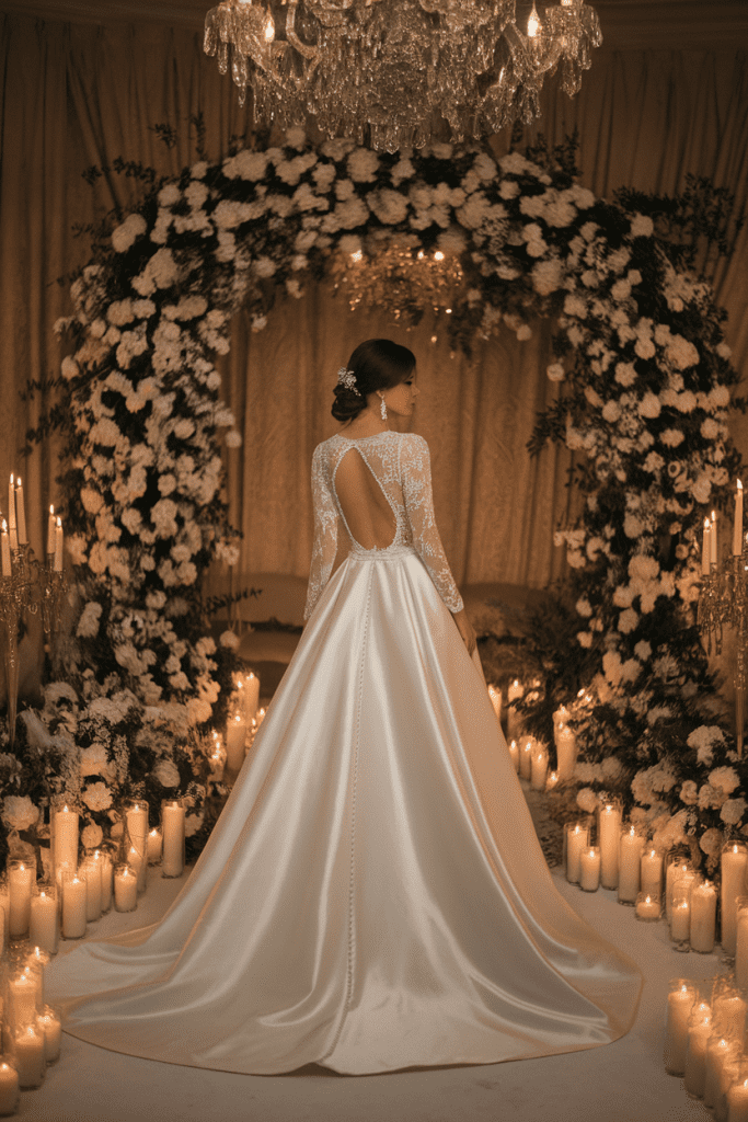 The good news? Winter weddings give you the perfect excuse to break out textures, layers, and moody colors that feel too dramatic in July but absolutely perfect in December. Think velvet that makes you look like an old-money heiress, satin that catches candlelight like a movie scene, and sleeves (yes, sleeves) that keep you cozy without looking matronly.