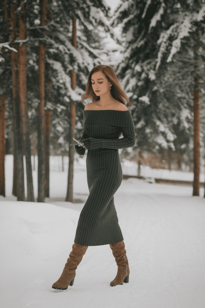 Short dresses don’t have to freeze you out. A velvet mini paired with sheer black tights is flirty but winter-appropriate. Add ankle boots or strappy heels for contrast.