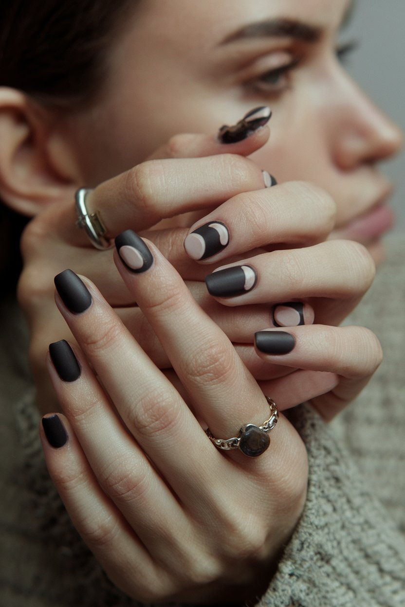12. Keep It Cool with Matte Charcoal and Nude Half-Moons