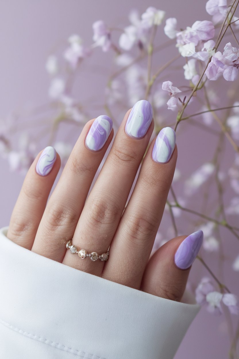 Craft a soft marble effect by blending two or three pastel shades with a thin brush or toothpick.