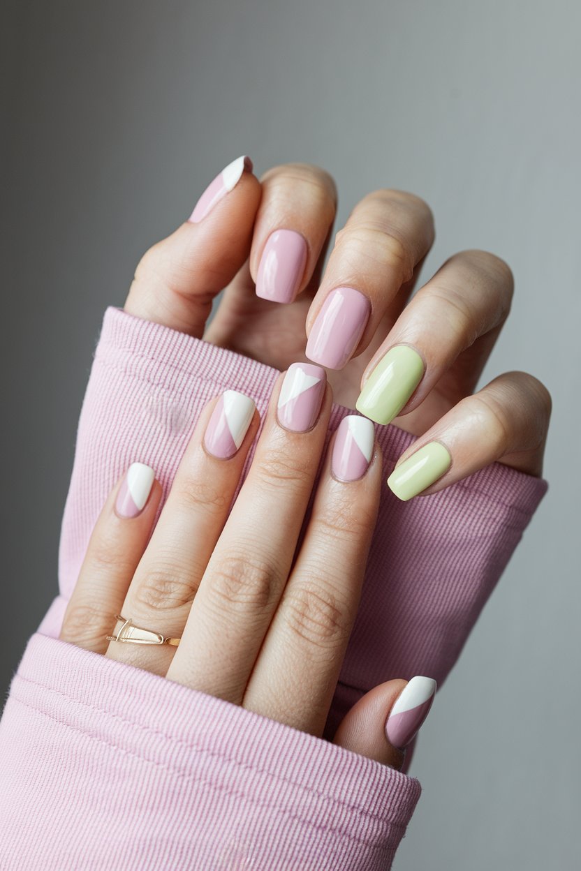 Pick two contrasting pastel colors—think mint green and baby pink or lavender and lemon—for a bold yet soft look that stands out without being loud.