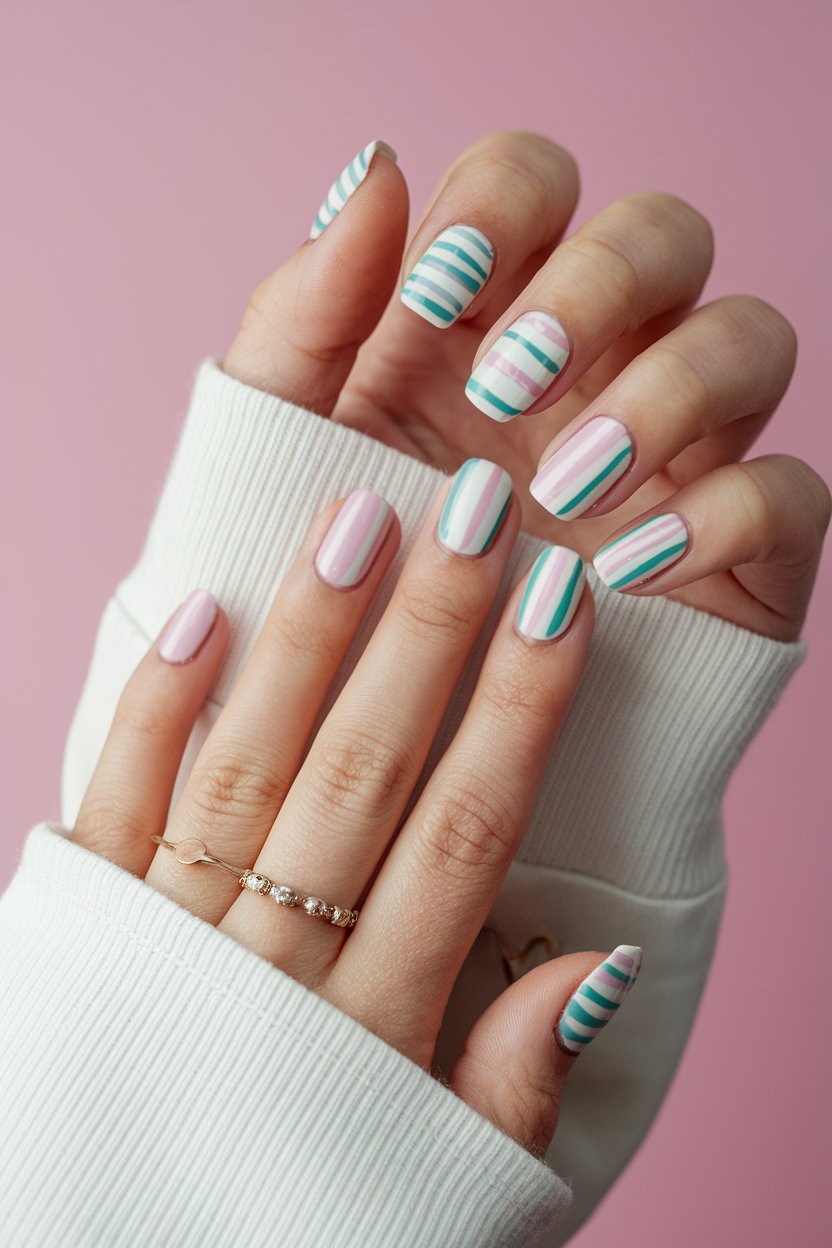 Stripes in soft pastel shades are a simple way to give your nails a polished, put-together look with a playful twist.