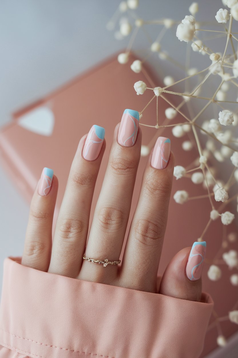 Add gentle pastel waves over a nude base for a dreamy, artistic touch.